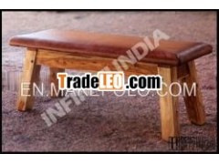 ANTIQUE INDOOR LEATHER & WOODEN VINTAGE INDUSTRIAL BENCH